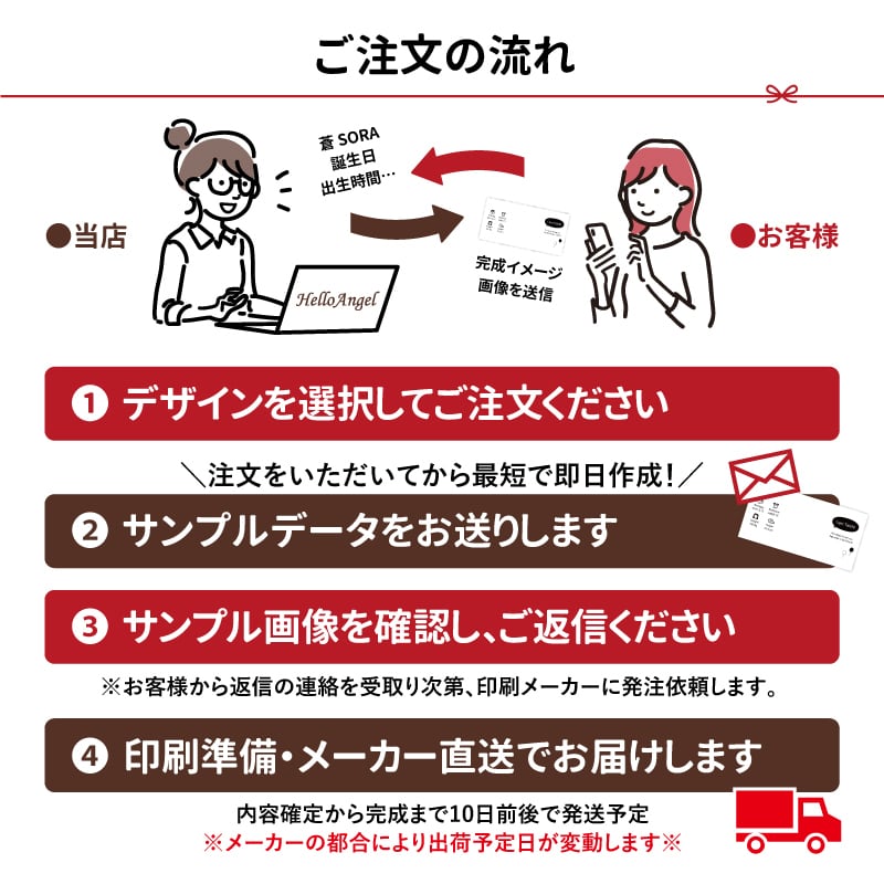 ※デザイン決定後から1週間前後のお届けになります。「最短お届け可能日」に記載してある日程とは異なりますため、予めご了承下さい。